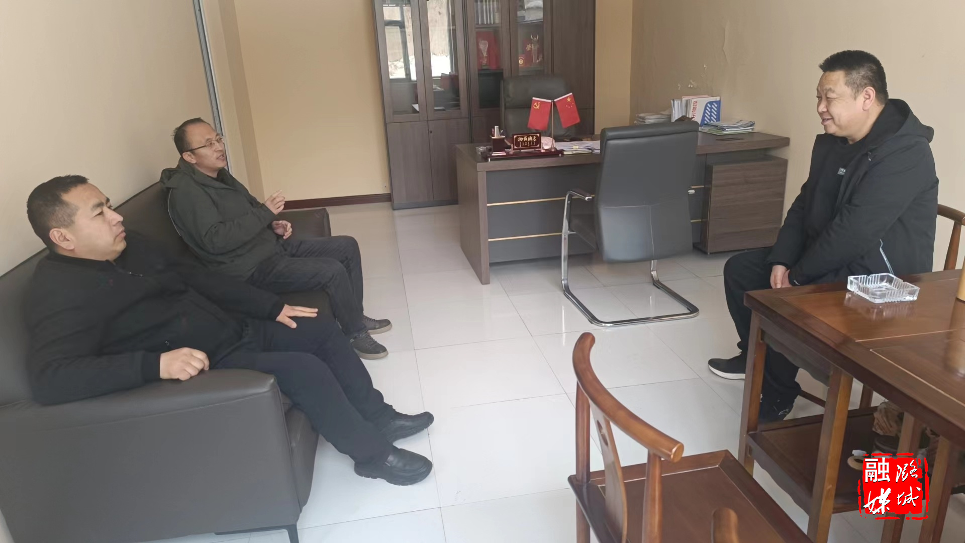 ▲翟店街道负责人与到访客商洽谈项目合作事宜,积极推进街道项目建设工作。