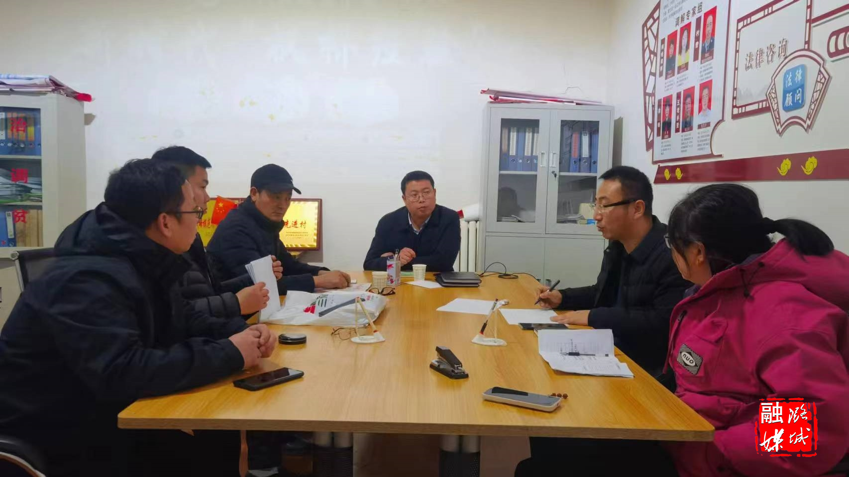 ▲翟店街道负责人到南天贡村协调推进壁头河综合治理项目。