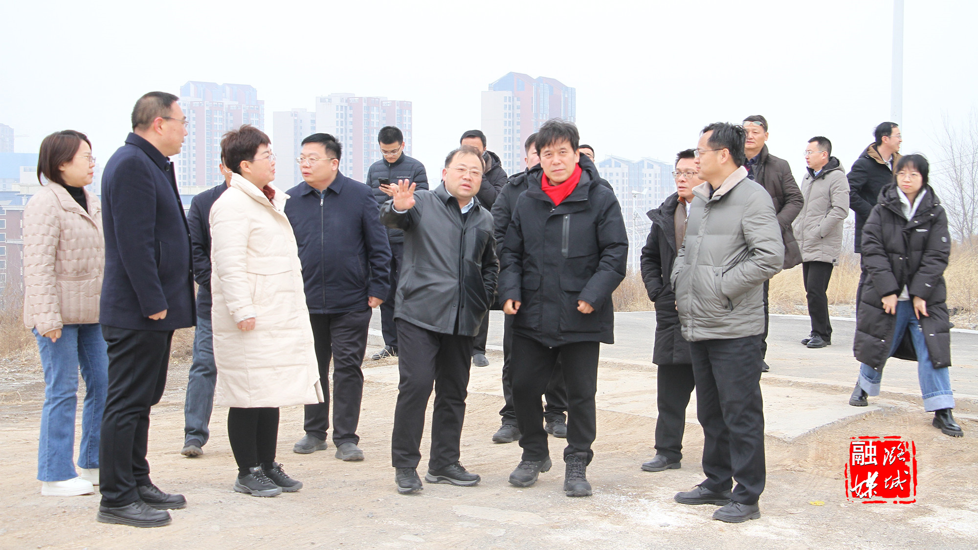 ▲辛安泉镇相关负责人在潞河村调研指导物流园项目入库工作。