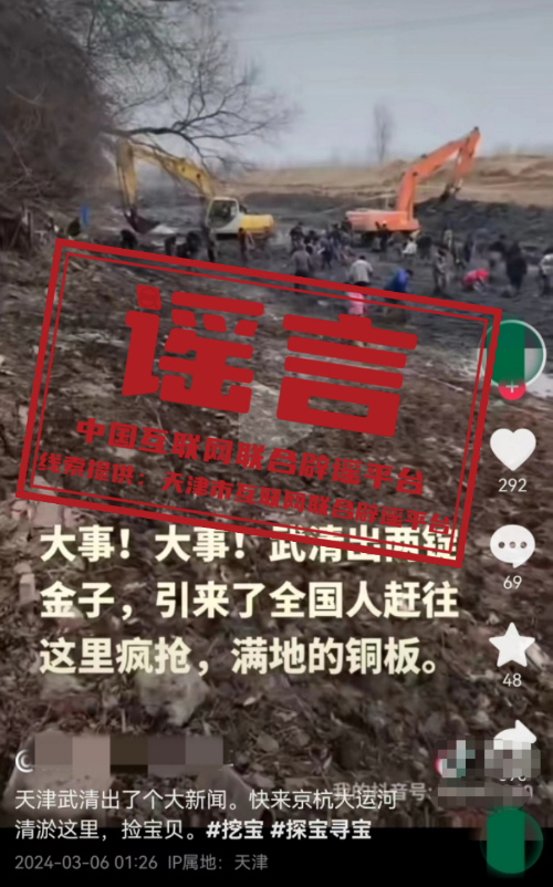 谣言:天津武清北运河城区段清淤挖出宝?