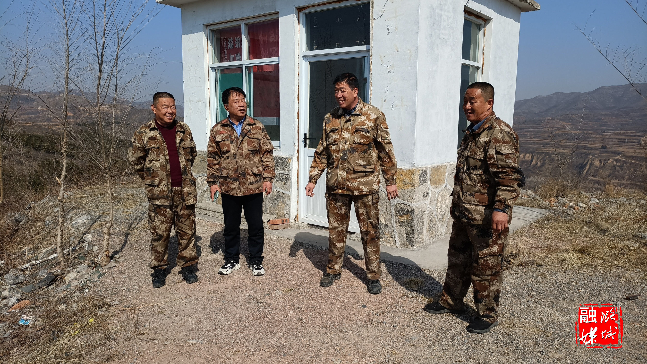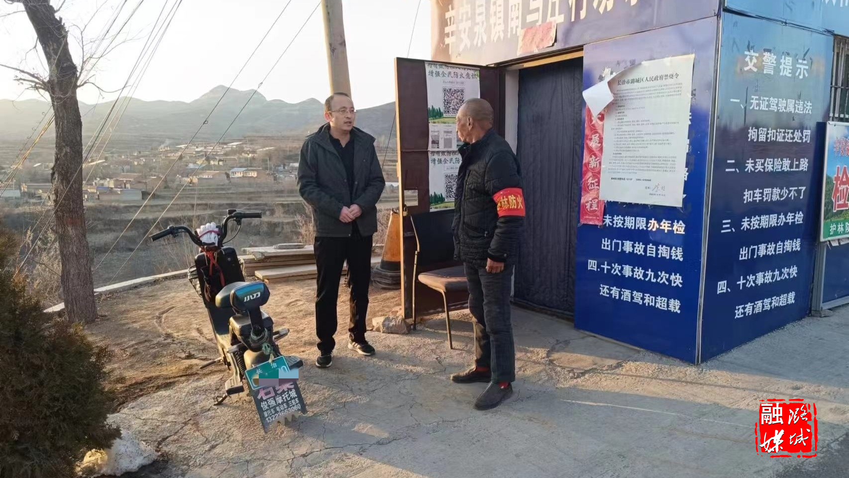 ▲辛安泉镇相关负责人在各村督查护林员值班值守情况。