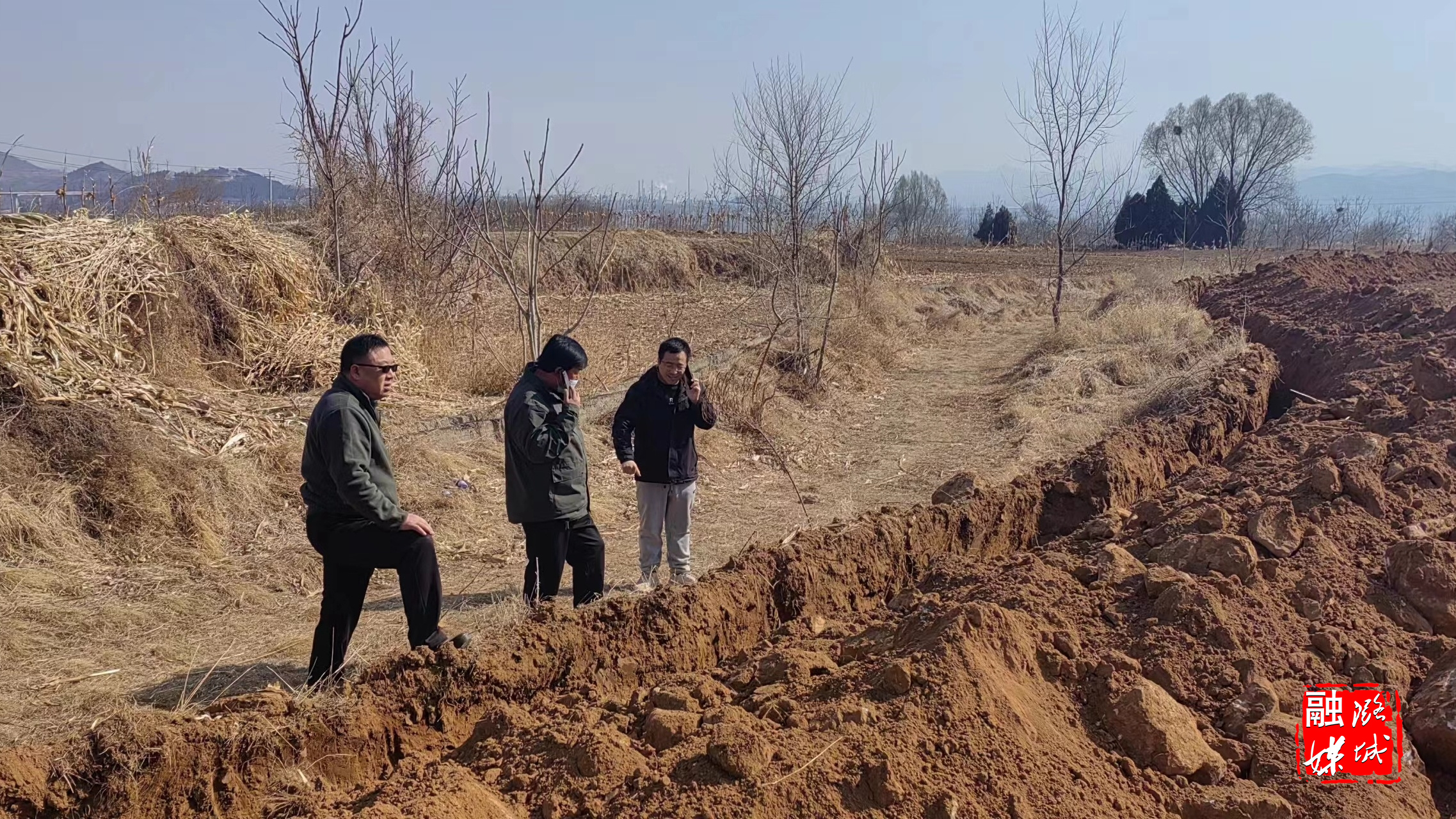 ★3月9日,辛安泉镇上村村委协调高标准农田田间路建设事宜。