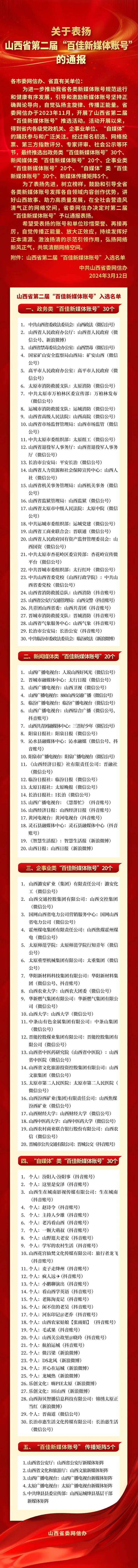 关于表扬山西省第二届“百佳新媒体账号”的通报