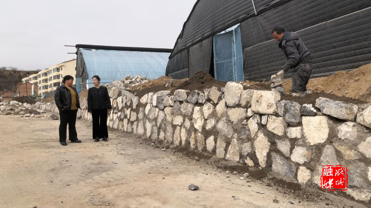 ★3月17日,辛安泉镇相关负责人在西流北村查看大棚设施建设情况。