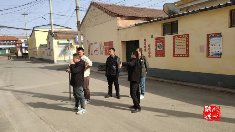 ▲辛安泉镇相关负责人同第三方测绘人员现场查看太行民兵纪念馆用地情况。