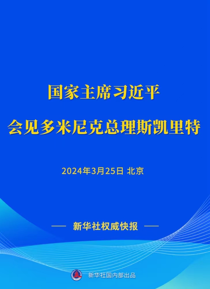 3月25日下午,国家主席习近平在人民大会堂会见来华进行正式访问的多米尼克总理斯凯里特。