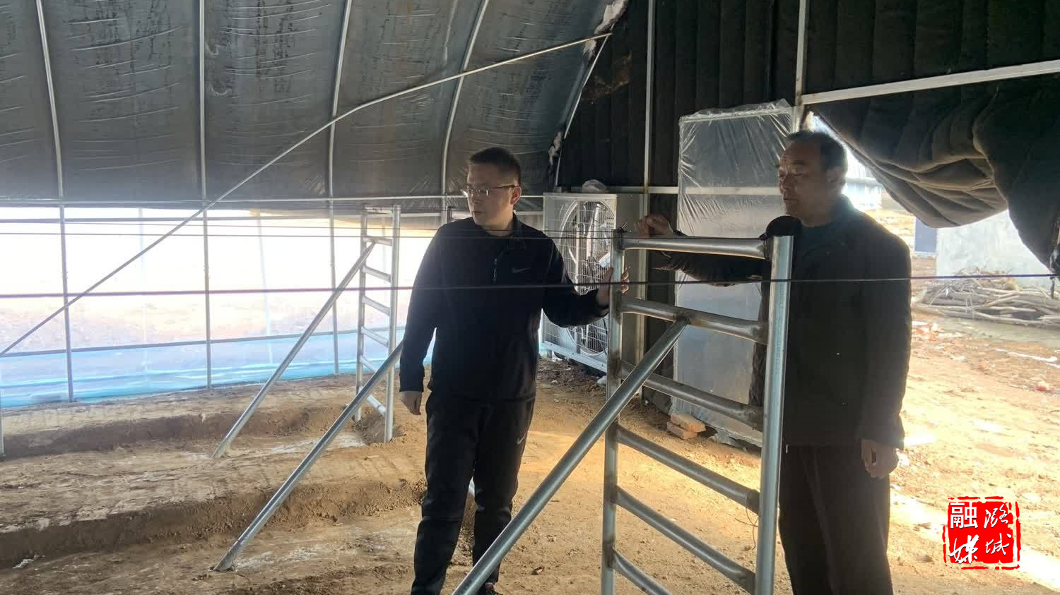 ▲微子镇负责人在东靳村查看香菇大棚建设情况。