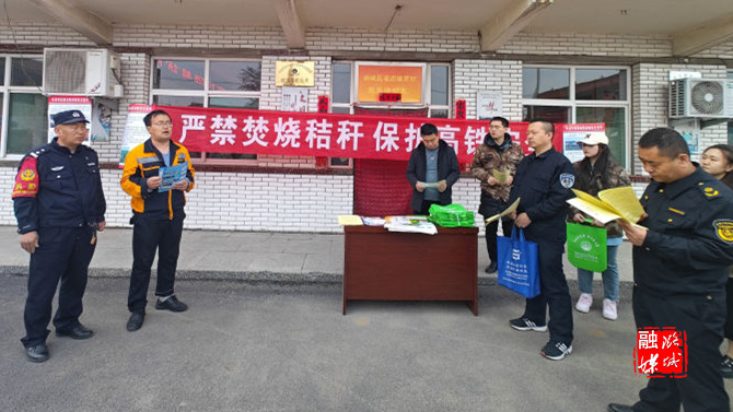 ▲翟店街道联合长治高铁东站派出所在贾村开展护林防火秸秆禁烧宣传。
