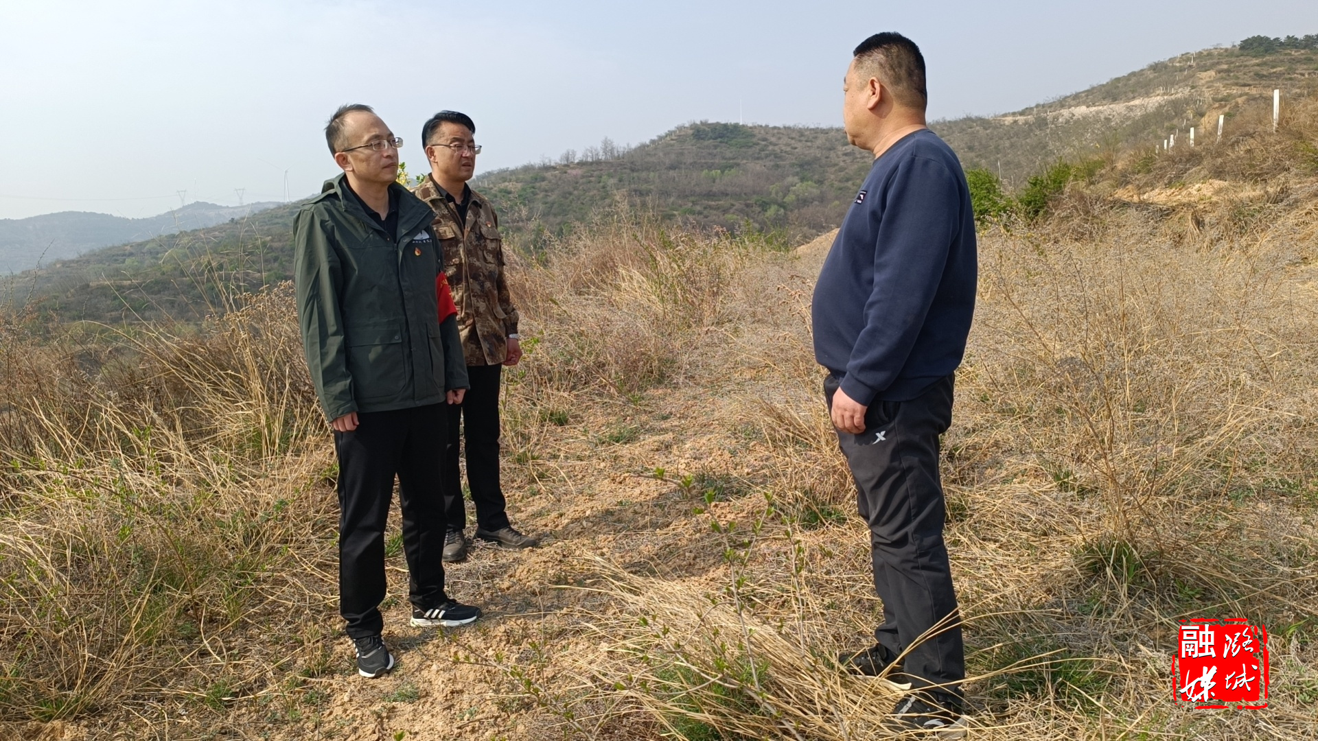 ▲辛安泉镇相关负责人在石梁村调研万亩连翘项目情况。