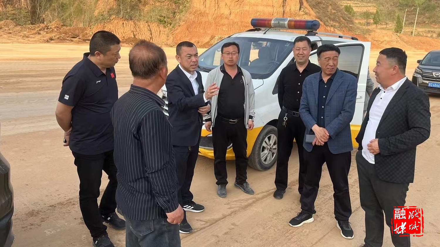 ▲辛安泉镇相关负责人在常村现场协调店辛线建设租地事宜。