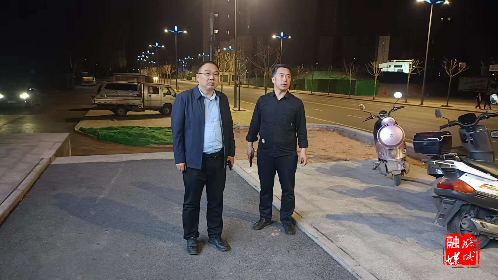 ▲潞华街道负责人到西南山社区潞阳里美食城实地查看项目建设情况。