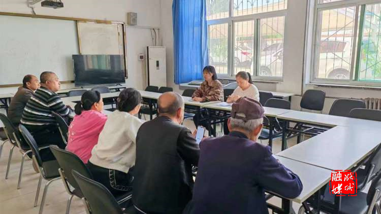 ★4月26日,辛安泉镇工作人员在石梁村向残疾户讲解助残帮扶项目相关政策。