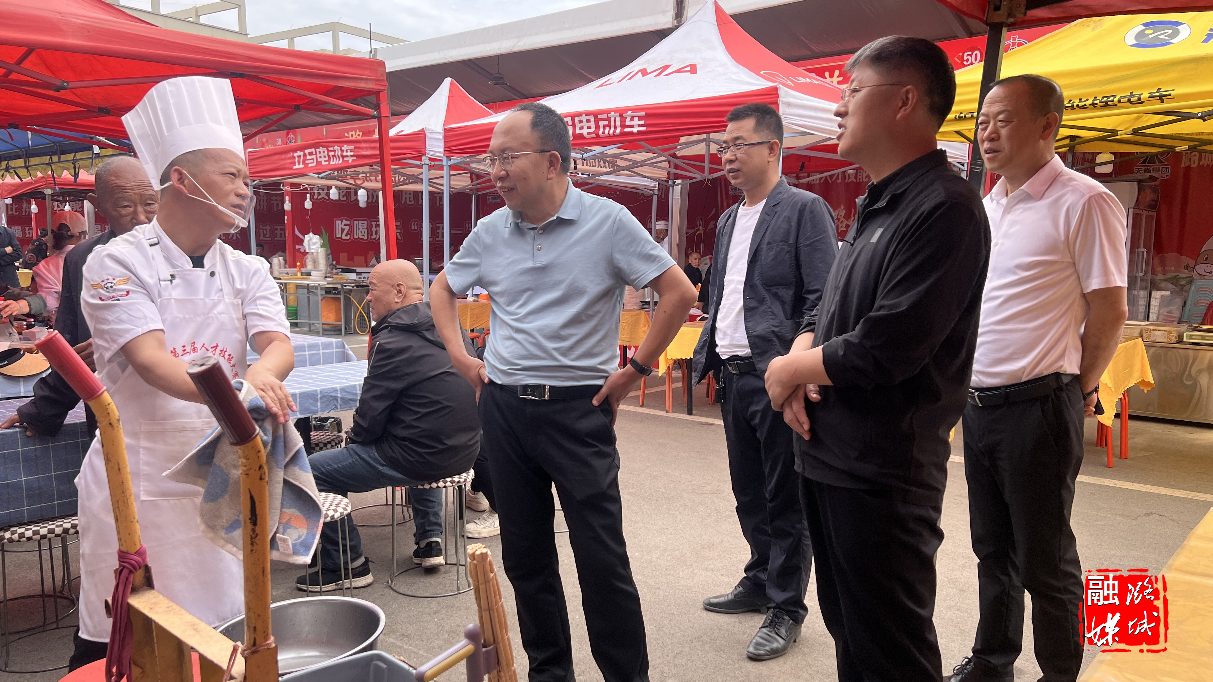 ★5月3日,区委常委、组织部部长李向前,副区长张永刚到金威购物广场查看第三届潞城区人才技能大赛暨“潞城甩饼”文化音乐节开展情况。