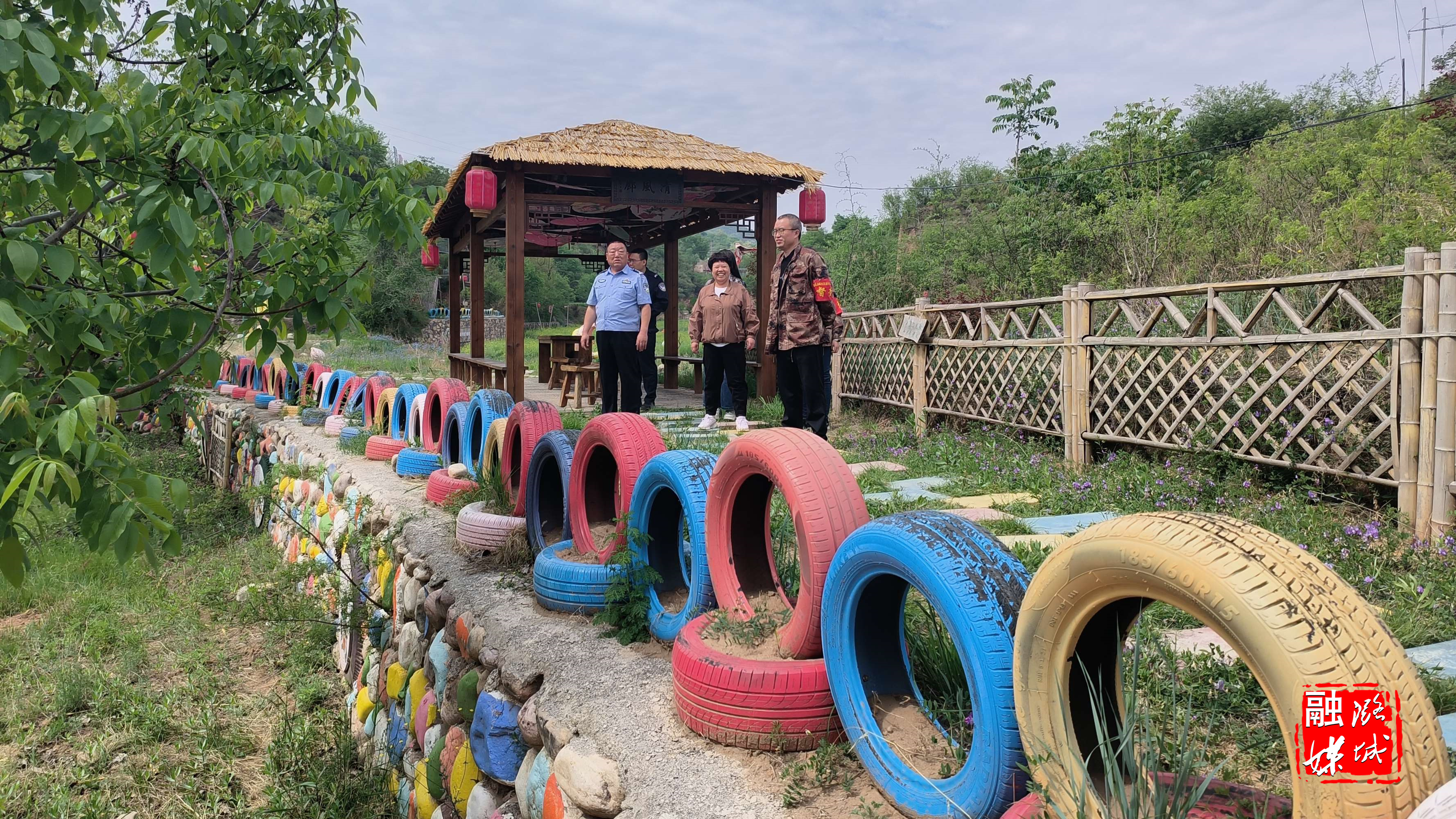 ▲辛安泉镇相关负责人带队在西流南村青葱乐园协助维护景区安全秩序。