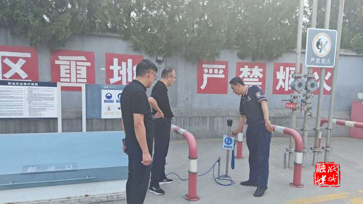 ★5月18日,辛安泉镇相关负责人在石梁村加油站就消防安全进行检查。