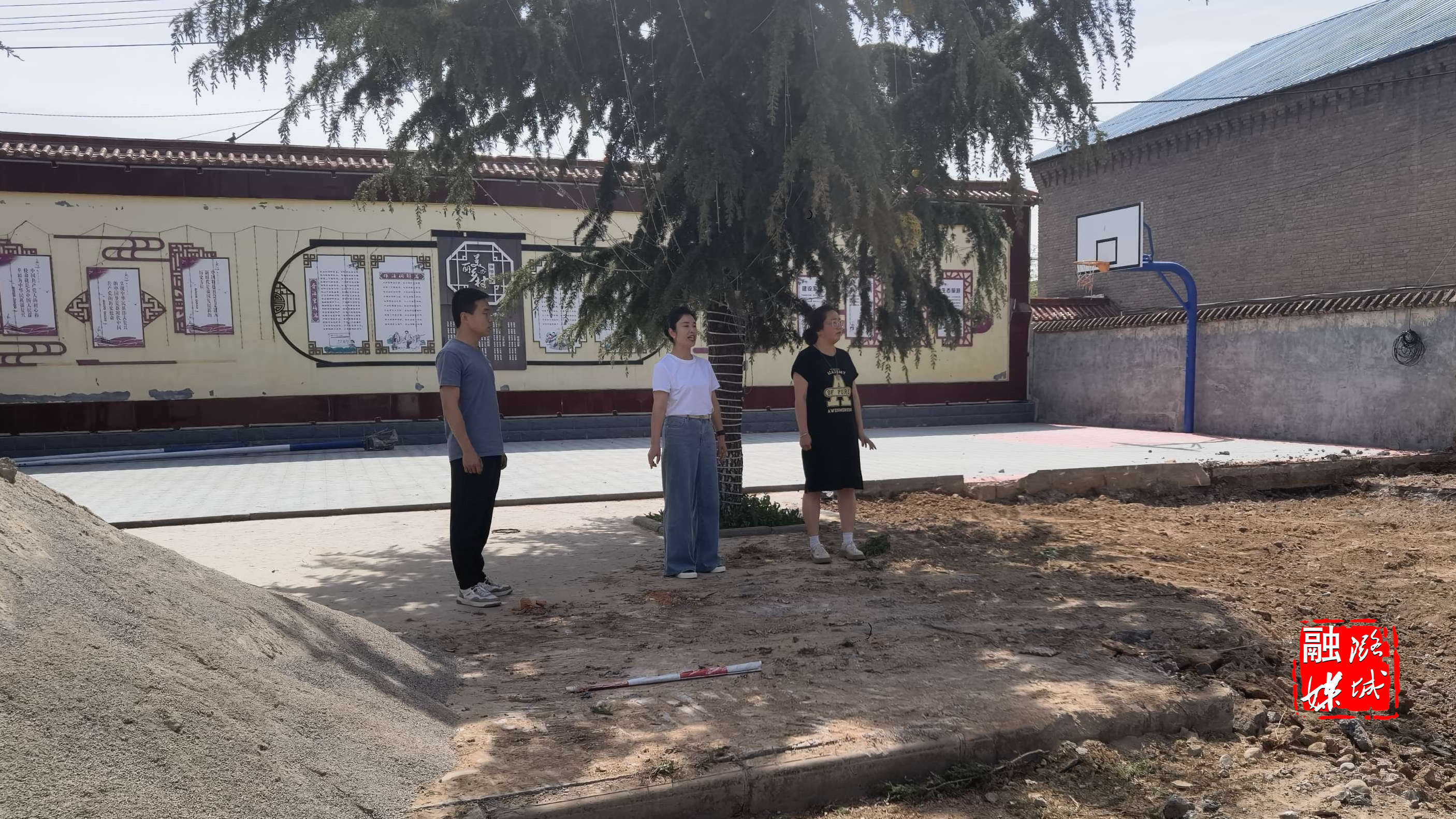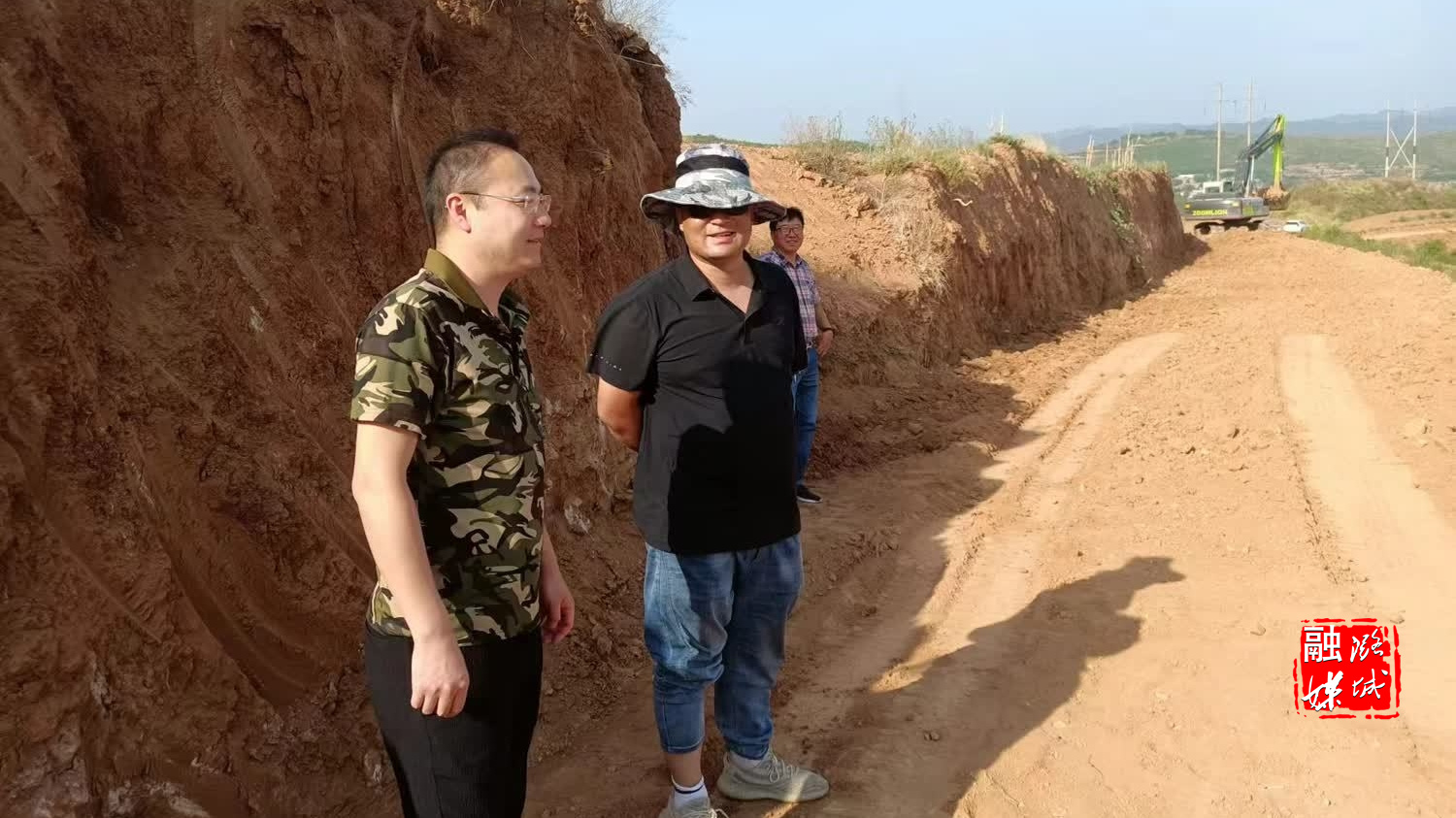 ★5月19日,微子镇相关负责人在神头村南岭片查看道路施工情况。