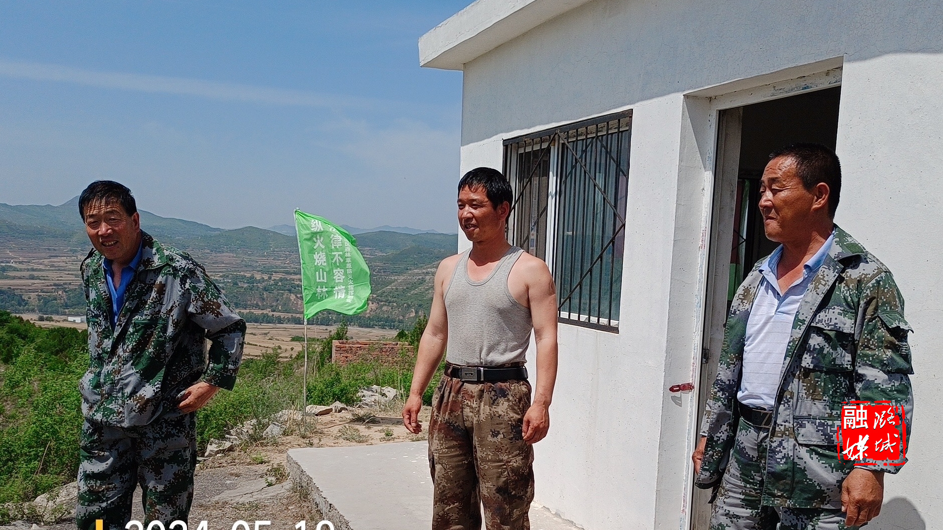 ▲辛安泉镇相关负责人在村开展森林防火早间巡查。