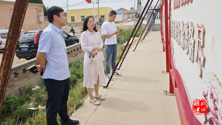 ▲成家川街道相关负责人实地查看东邑村广场建设情况。