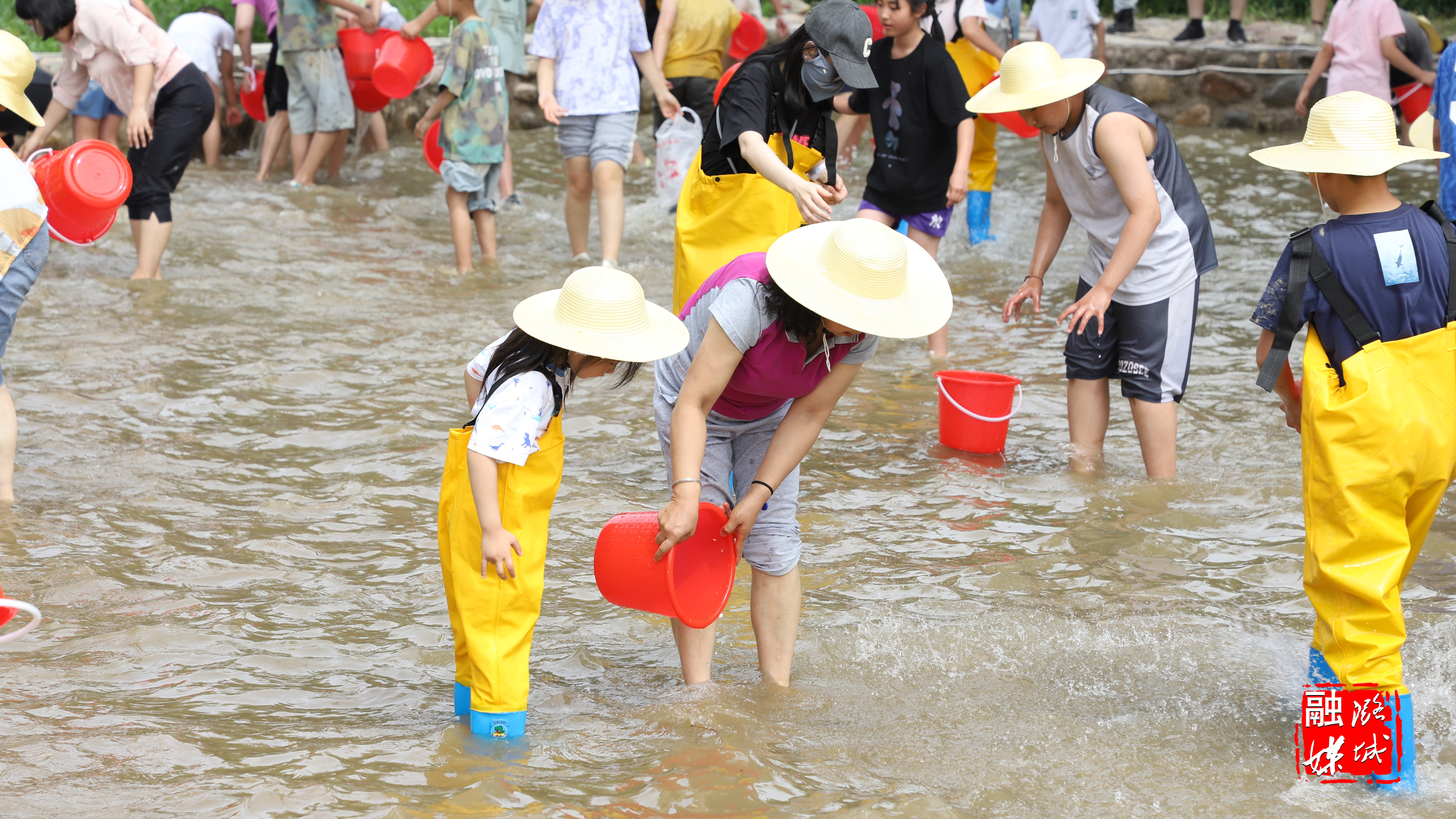 在近距离感受传统农耕文化的魅力、体验田野农事的辛苦与乐趣后,趣味横生的浑水摸鱼、探寻水源等活动相继拉开序幕。大家纷纷穿上雨鞋、卷起裤腿,踏入清凉的稻田水中,同鱼儿展开激烈地追逐;还有不少人选择来到“南流涌泉”,一面感受泉水的清冽与甘甜,一面探寻水源地、了解水文化。