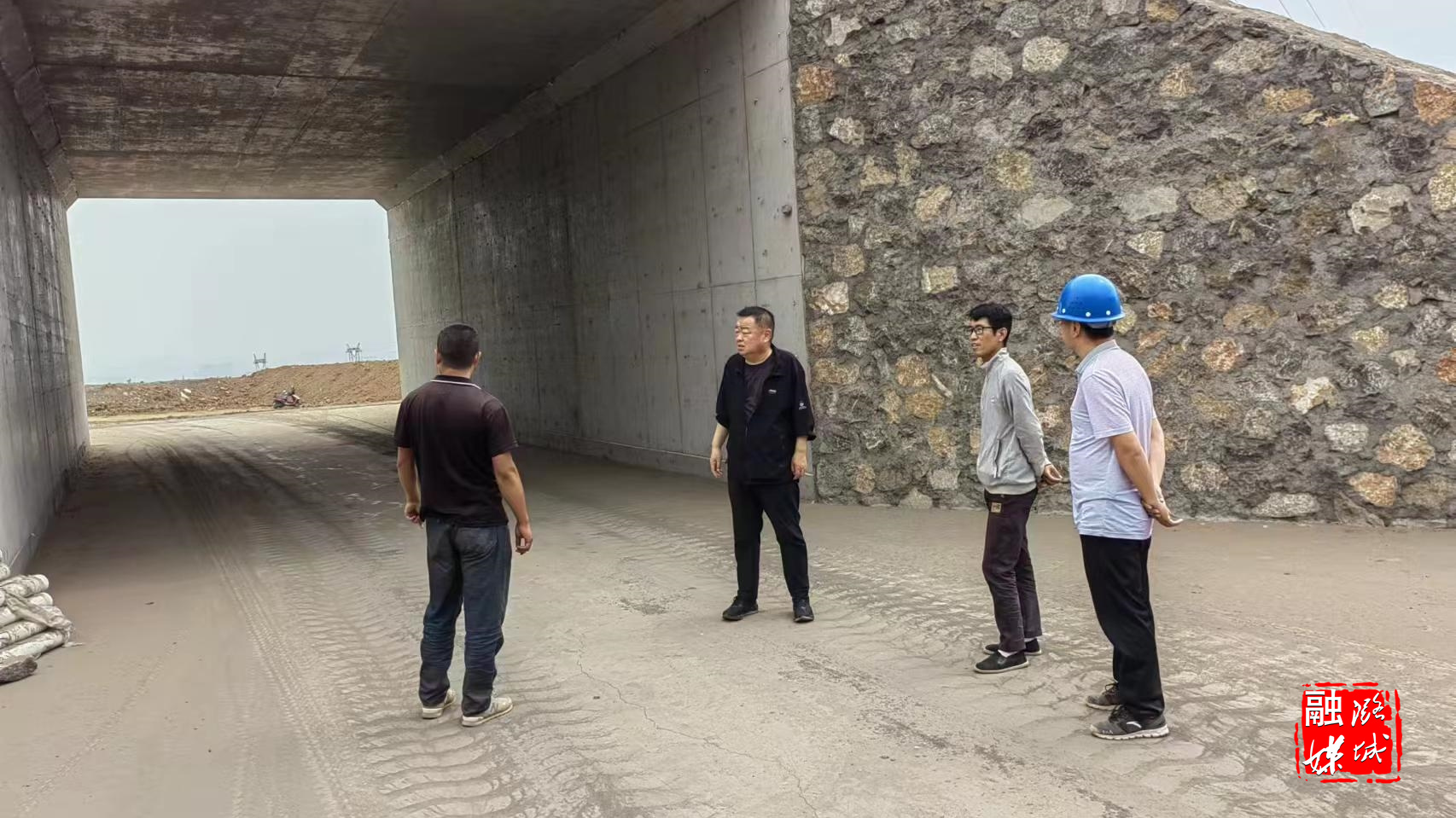 ▲区交通运输局相关负责人在太行一号旅游公路项目现场督导施工进度。