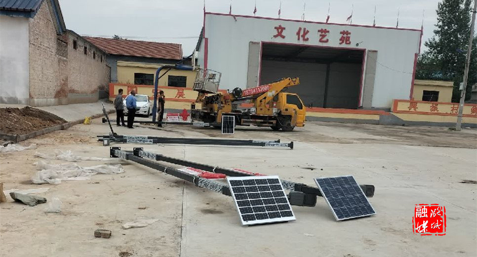 ▲微子镇东靳村组织人员安装太阳能路灯。