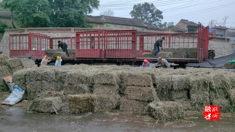 ▲史回镇任和村组织人员对中药材艾草进行打包销售。