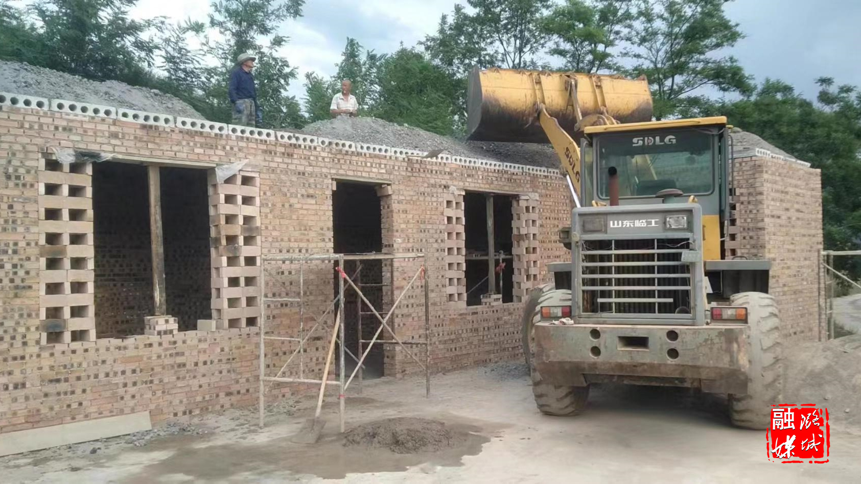 ▲微子镇负责人在东靳村查看人居环境整治建设项目施工情况。