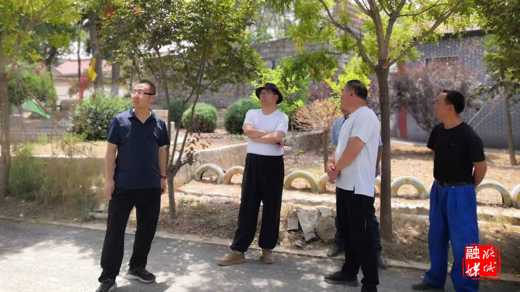 ▲翟店街道相关负责人到寨上村协调推进传统古村落文旅项目建设工作。