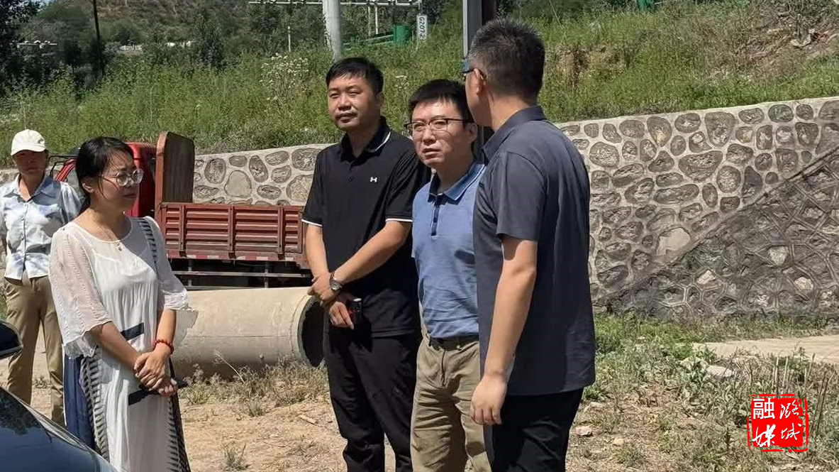 ▲店上镇相关负责人到河湃村督导污水处理工程。