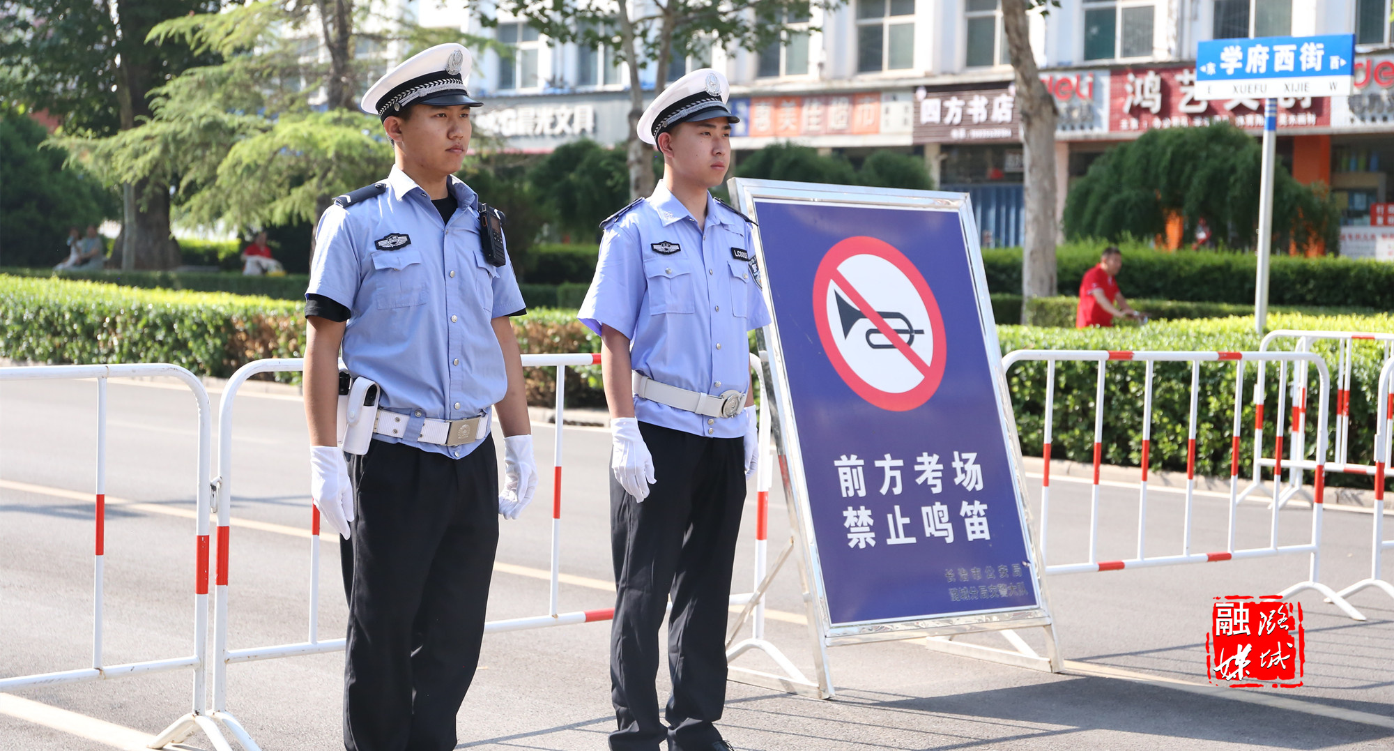 在学府街与府西北路交叉路口,记者看到,区交警大队一早便在考点周边部署警力,摆放禁止鸣笛提示牌,有序引导来往车辆绕行,随时做好应对突发情况的准备。