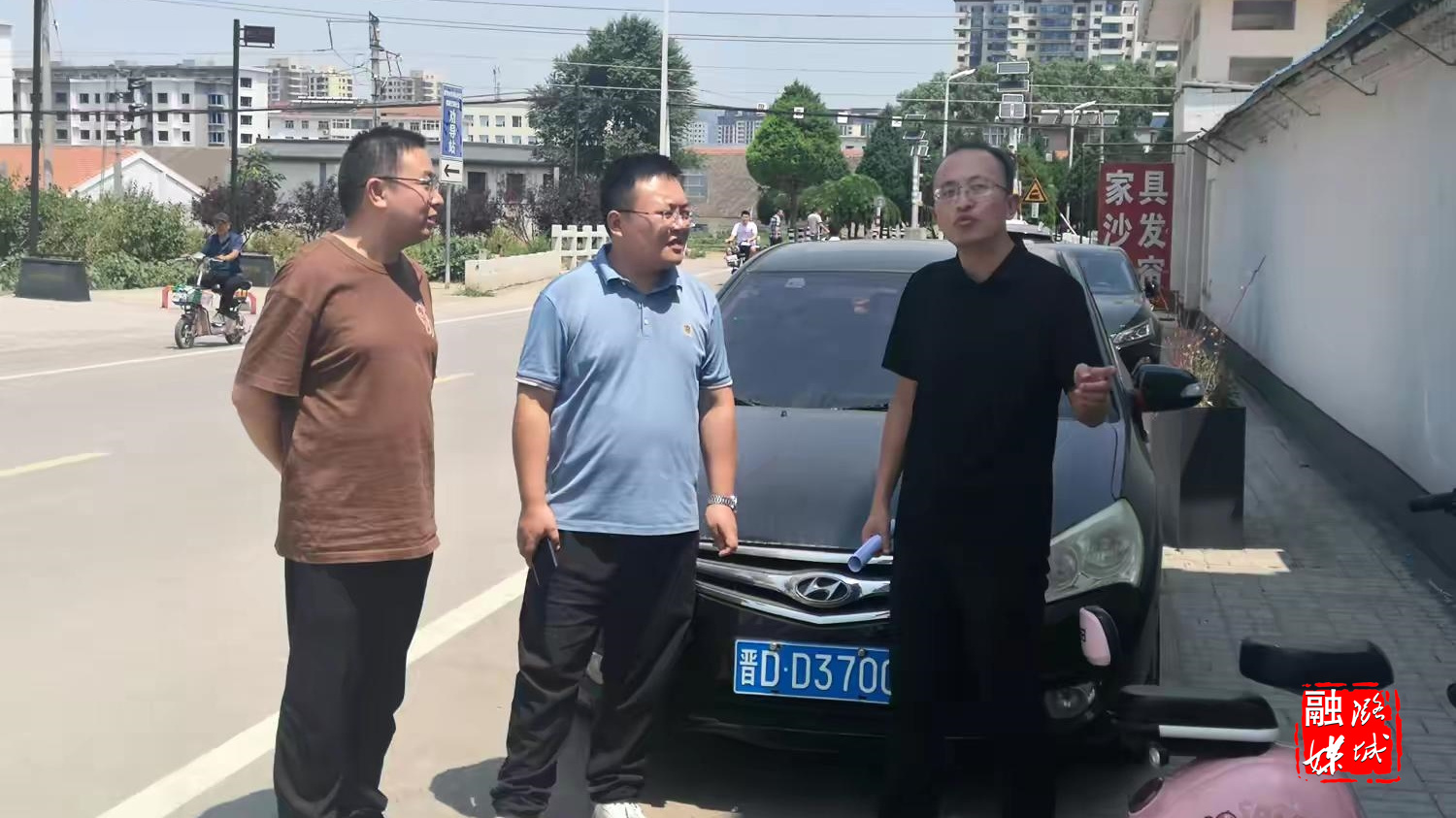 ▲微子镇负责人同项目负责人就神头之战文化路施工情况进行会谈。