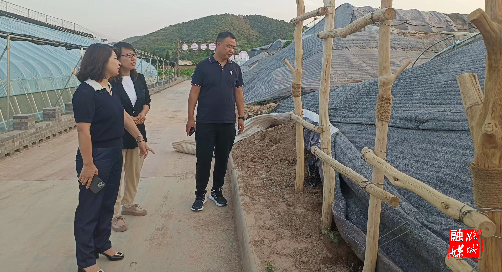 ▲辛安泉镇负责人在西流北村实地查看兴泉生态农场建设进度。