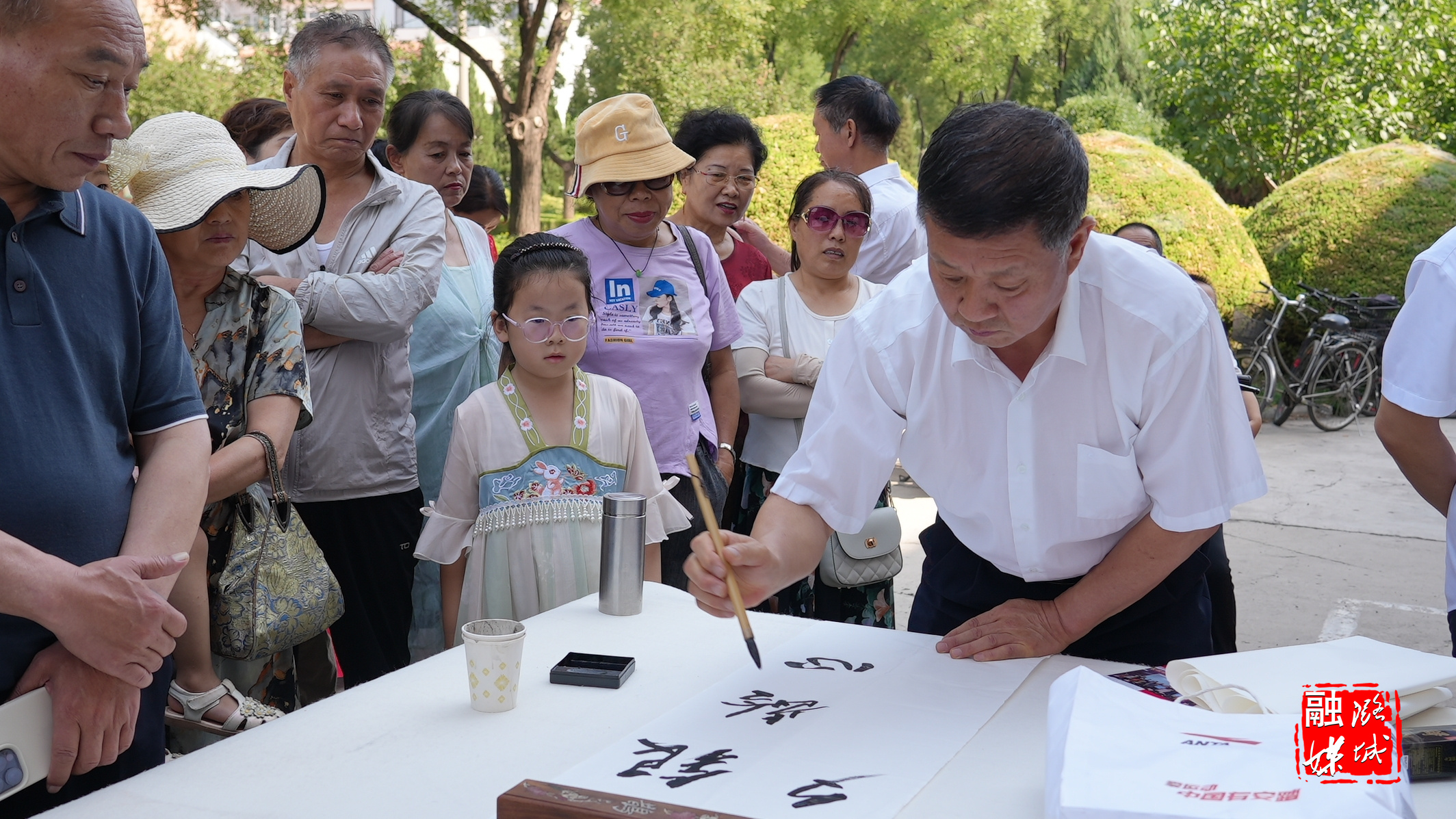 伴随着优美的音乐,我区老年大学书法、绘画班学员现场展示书画风采,作为新时代的见证者和改革发展历程的亲历者,他们把对党、对祖国的热爱倾注于笔端,创作出一幅幅精美的书法画作。