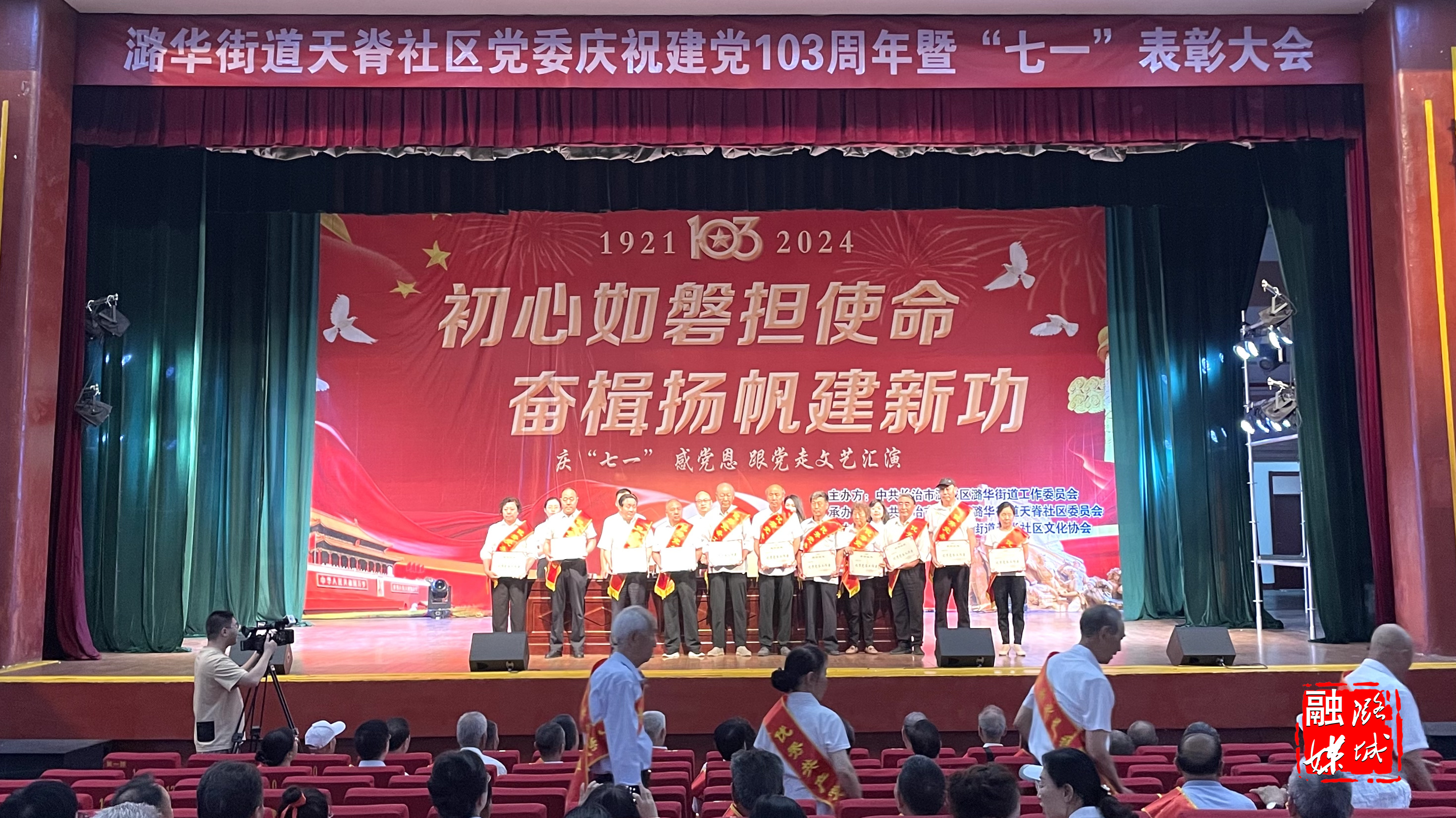 初心如磐担使命,奋楫扬帆建新功。天脊社区举行庆祝中国共产党成立103周年暨“七一”表彰大会,为辖区五十年以上党龄的党员颁发“光荣在党50年”纪念章,并为优秀党支部、优秀党支部书记、优秀党务工作者、优秀共产党员以及优秀在职共产党员颁奖。表彰大会后,由社区居民精心筹备的文艺节目轮番上演,表达着对党的深厚情谊和对祖国的美好祝愿。