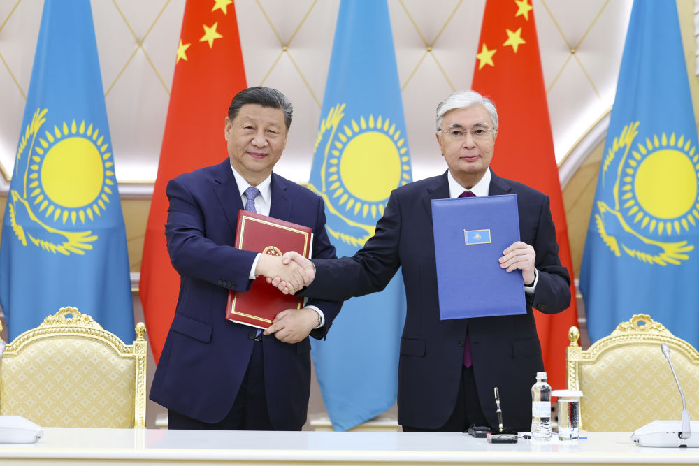 习近平指出,去年,我和托卡耶夫总统在西安和北京两次会晤,就中哈关系发展作出新部署新规划,引领中哈关系“黄金30年”快速发展。中方始终从战略高度和长远角度看待中哈关系,将哈萨克斯坦视为中国周边外交的优先方向和在中亚的重要合作伙伴,中方维护好、发展好中哈关系的意愿和决心坚定不移,不会因一时一事或国际风云变幻而改变。中国将永远是哈方可以倚重和信赖的好邻居好伙伴。中方愿同哈方继续加强天然气等传统能源合作,拓展光伏、风电等新能源合作,支持更多中国企业赴哈萨克斯坦投资,助力哈方将资源优势转换为发展能力,实现绿色、低碳、可持续发展。