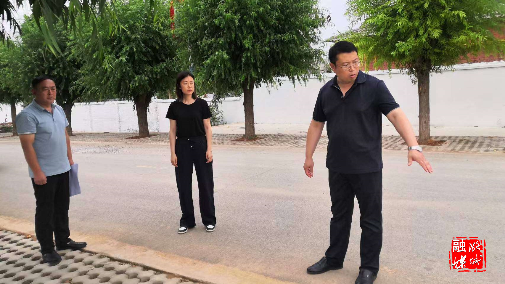 ▲翟店街道负责人到寨上村推进传统古村落文旅项目建设工作。