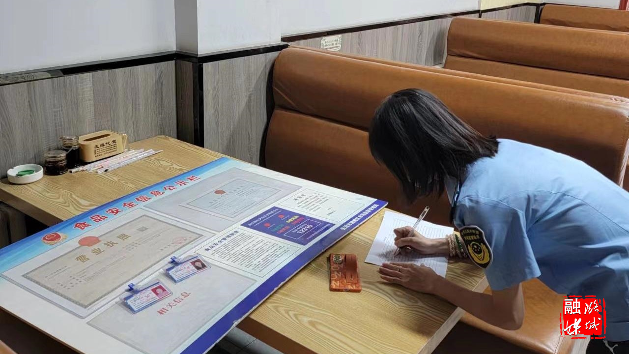 ★7月5日,区市场监督管理局工作人员在学府街沿街门店督导文明城市建设工作。