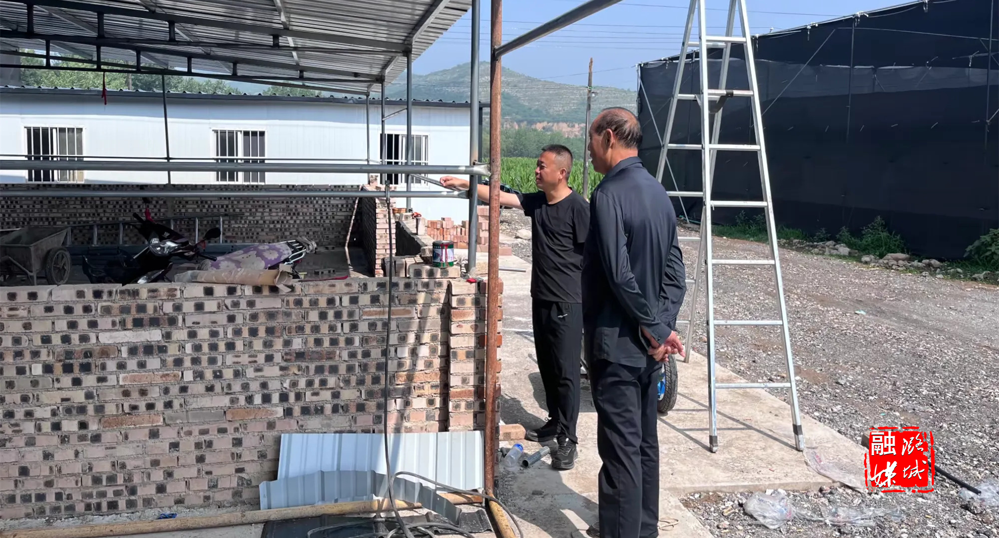 ▲黄牛蹄乡负责人到香菇种植基地查看冷库等基础设施建设进度。