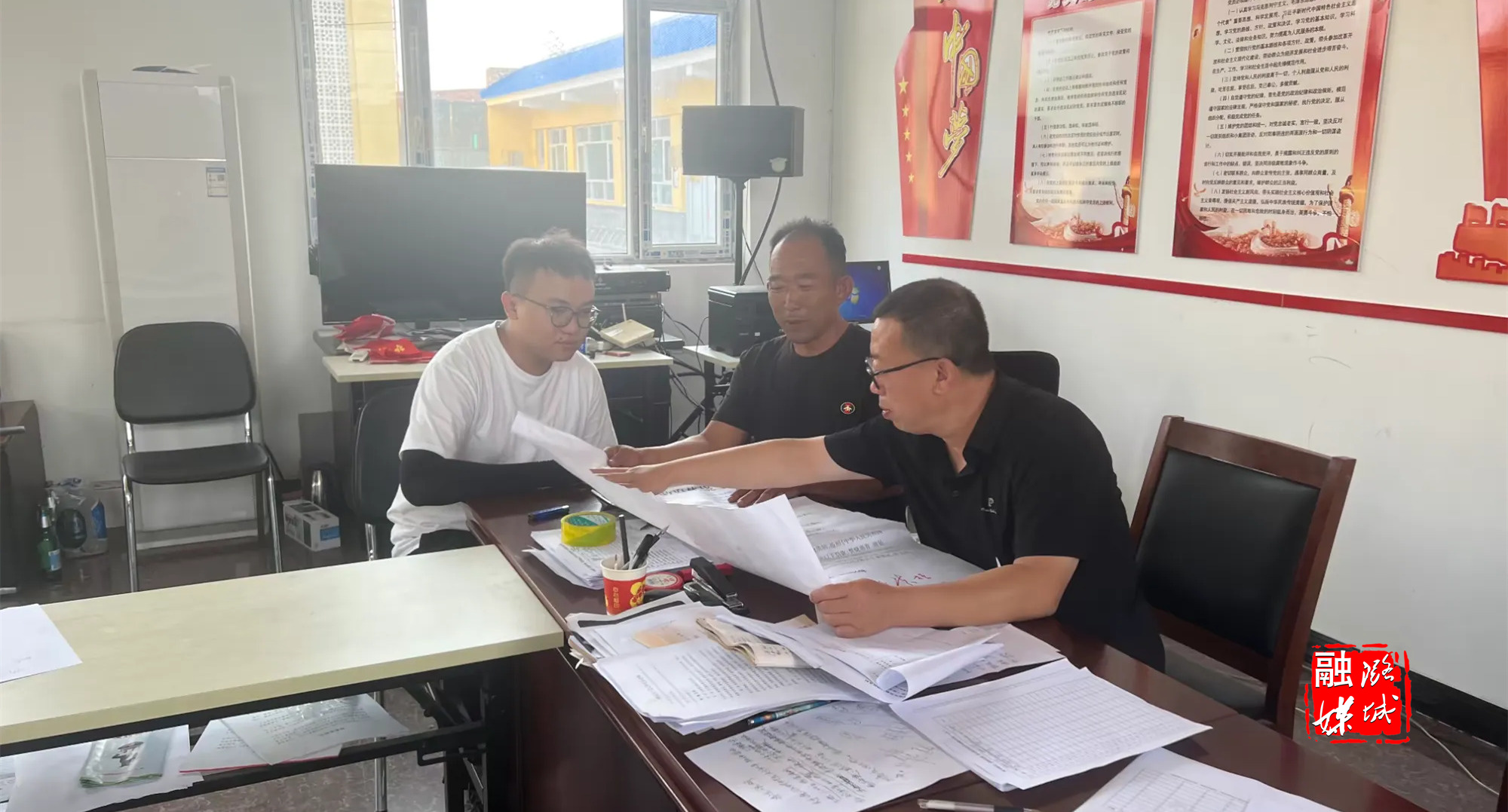 ▲店上镇工作人员到周武村入户协调“太行一号”旅游公路建设事宜。
