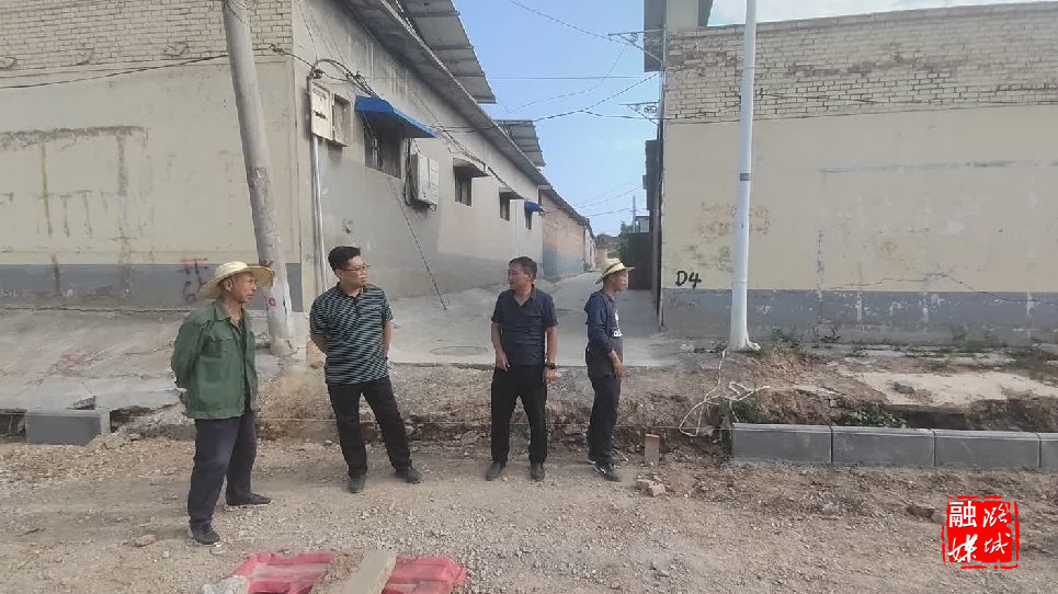 ▲微子镇相关负责人在西靳村查看人居环境整治建设工程施工情况。