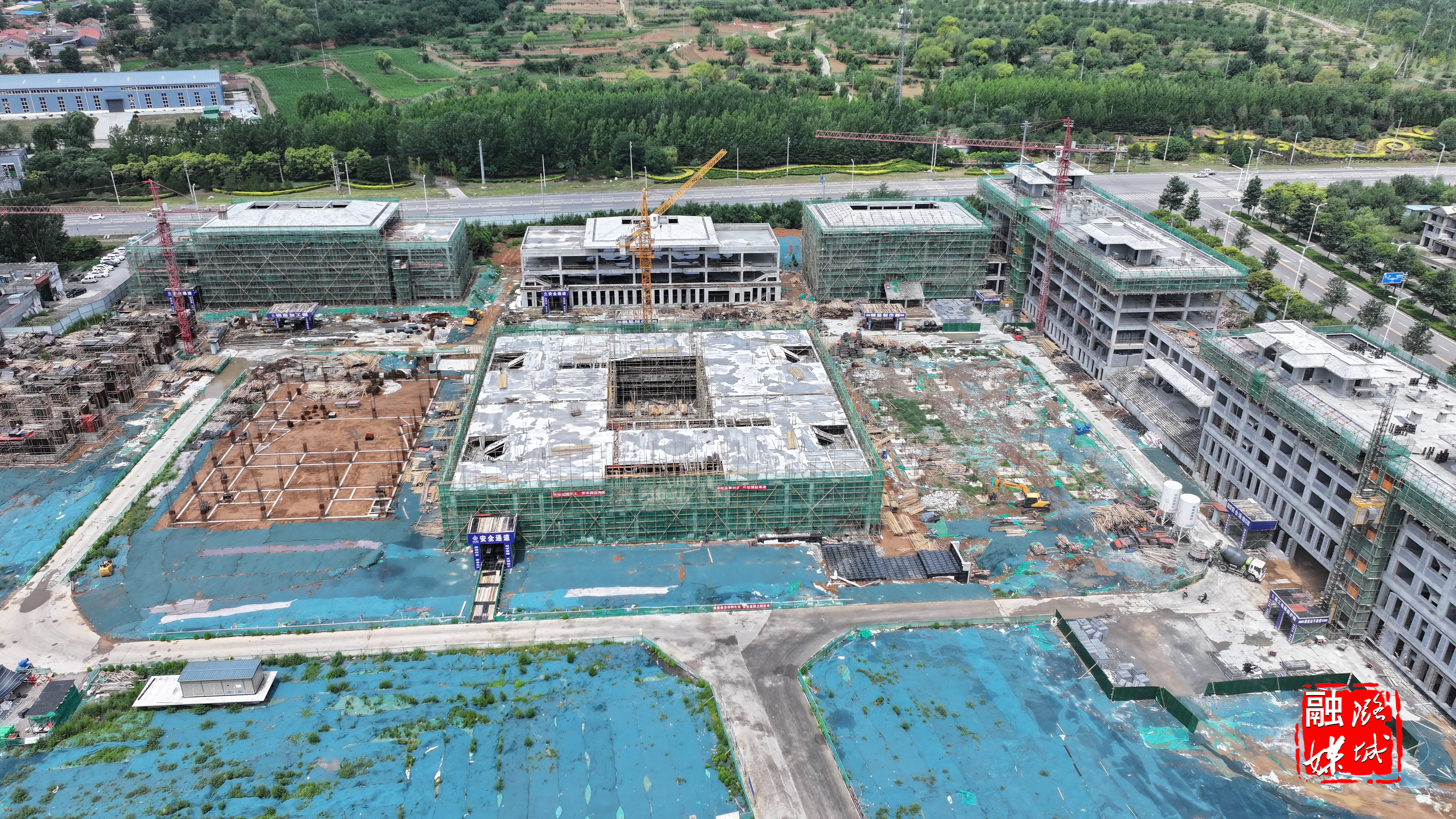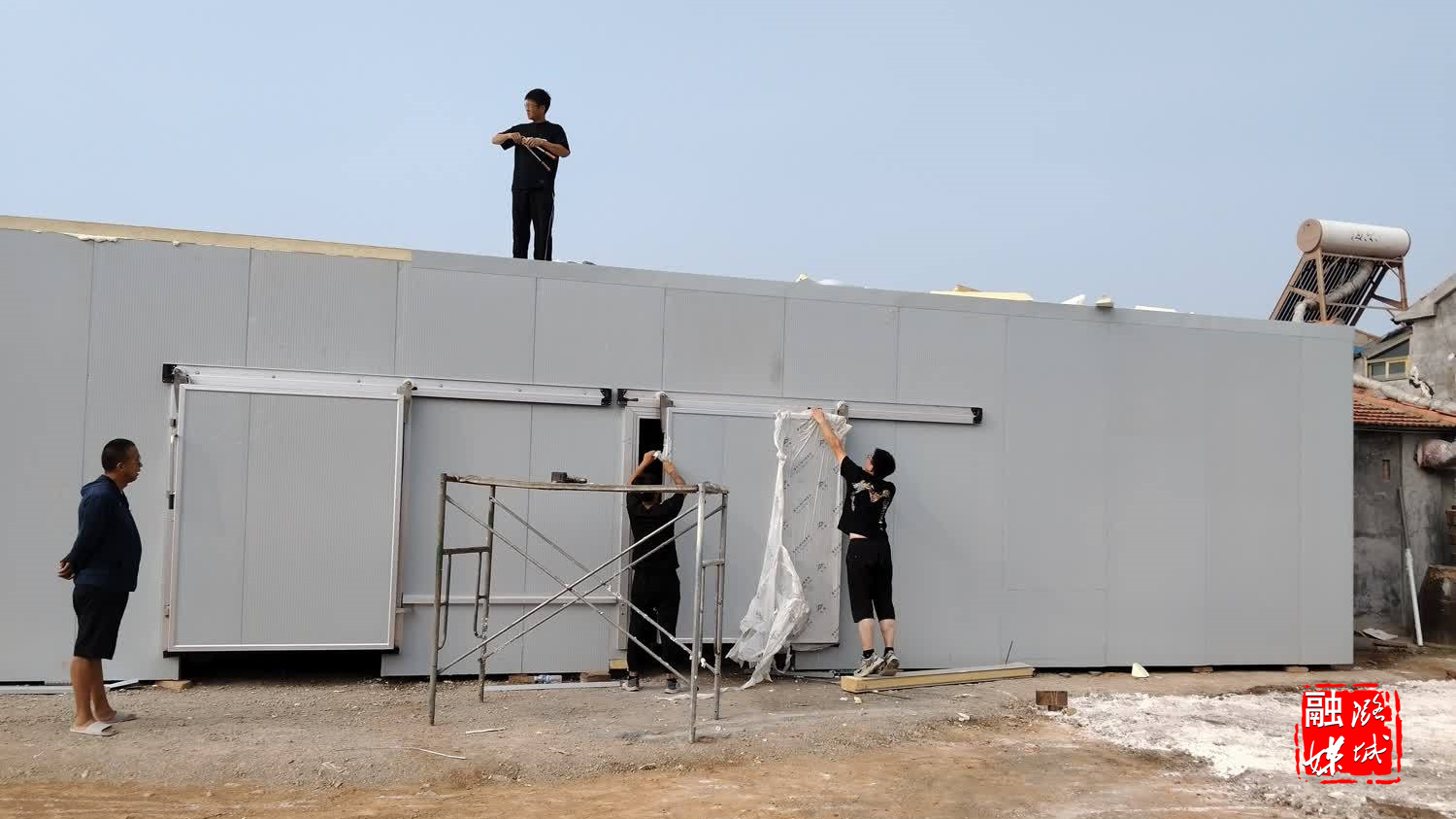 ▲微子镇东靳村香菇大棚冷库建设项目加快施工进度。