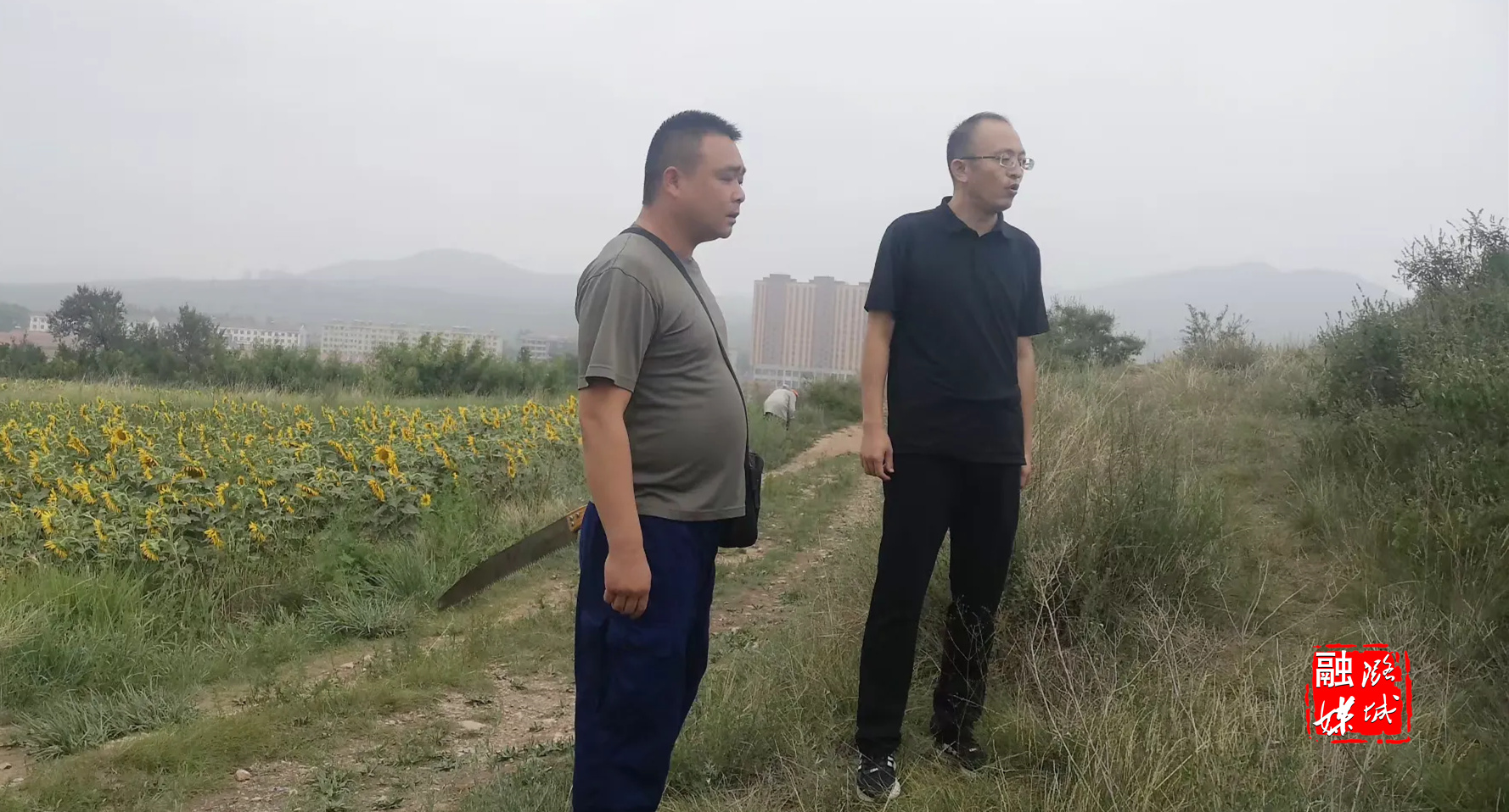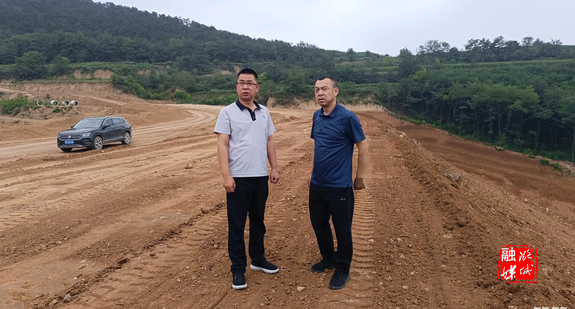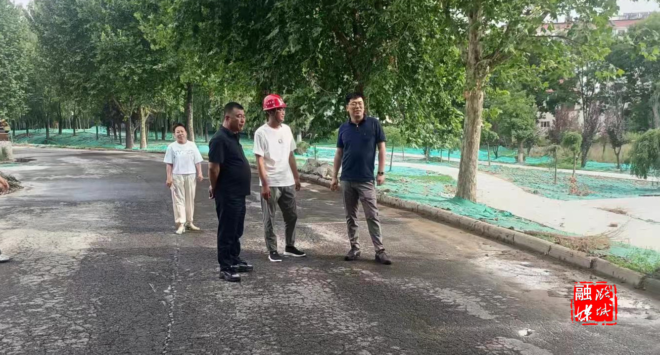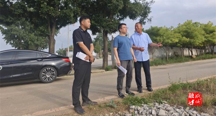 ★7月16日,微子镇相关负责人在贾街村查看神头之战纪念园文化路施工情况。