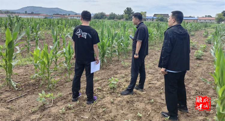 ★7月19日,微子镇工作人员在西靳村和王都庄村查看玉米大豆复合种植情况。