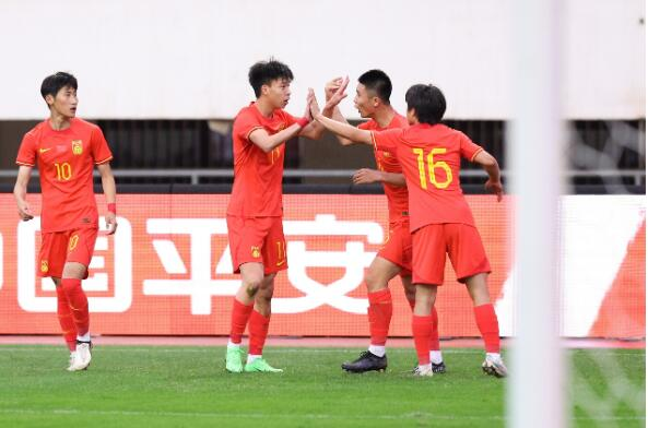 ▲中国U-19男足庆祝进球