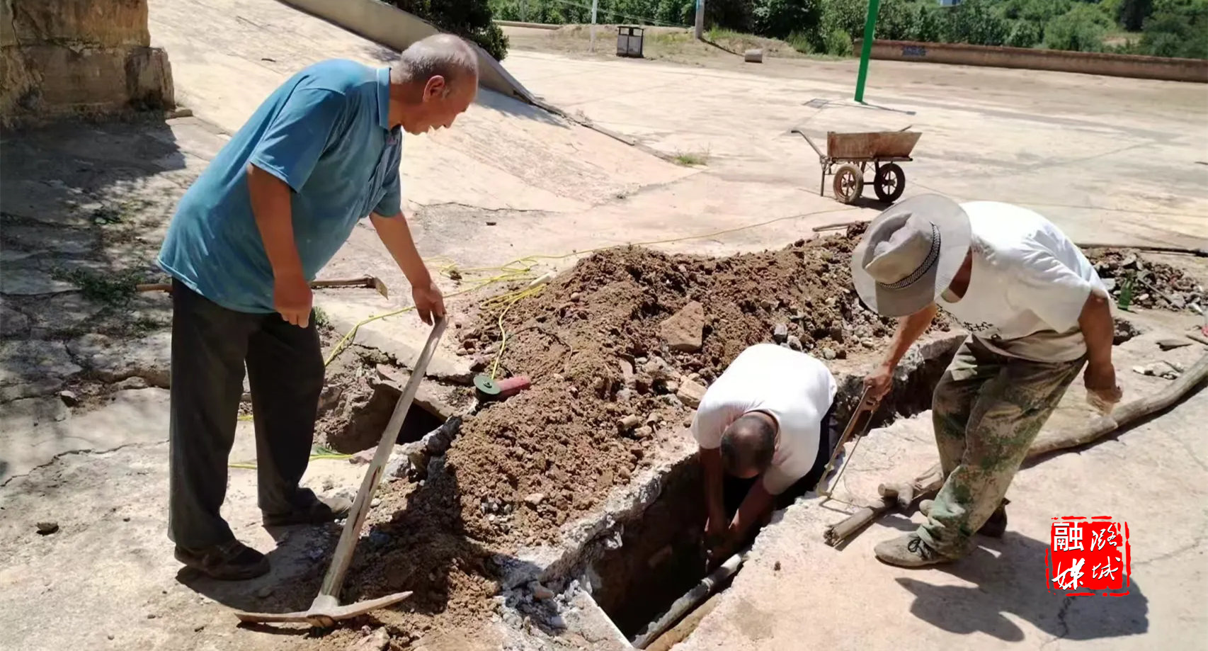 ★7月20日,辛安泉镇南马庄村组织人员抢修供水管道,确保群众正常用水需求。