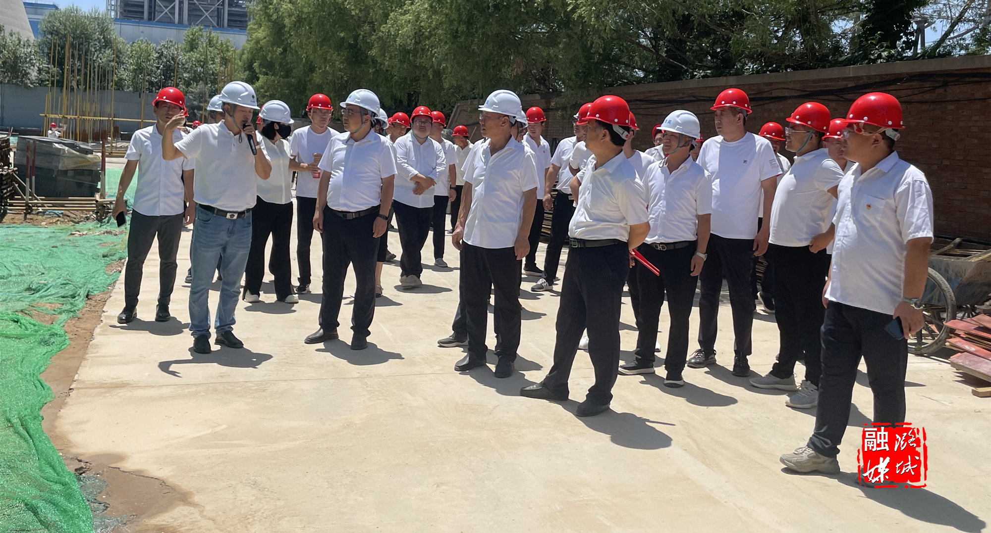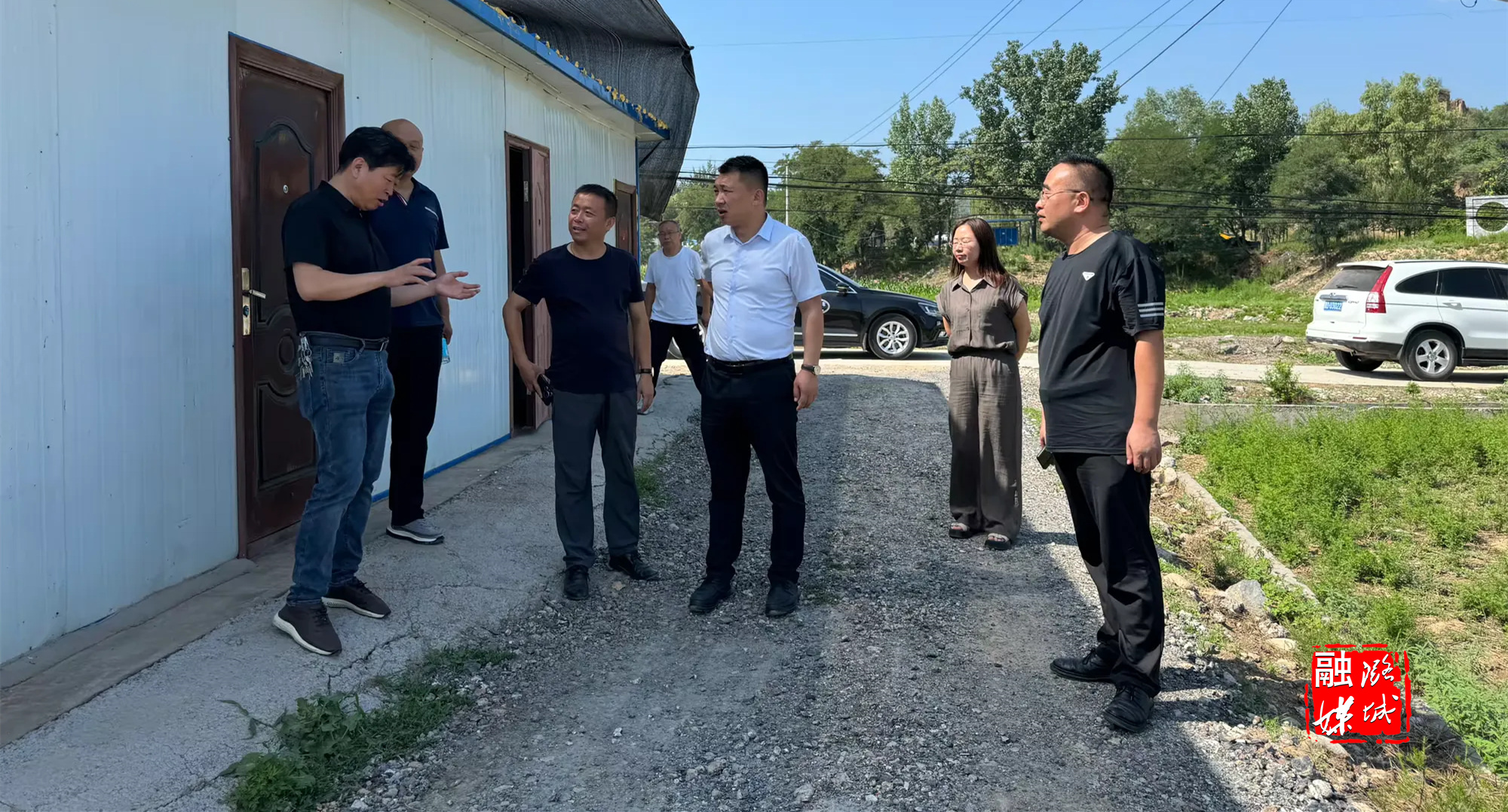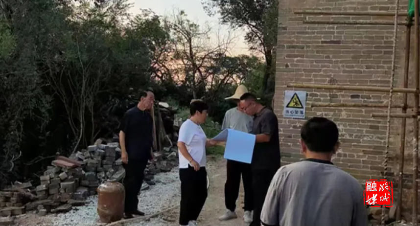 ▲辛安泉镇相关负责人在石梁村实地查看太行区第四军分区及32团石梁旧址保护提升项目进展情况。