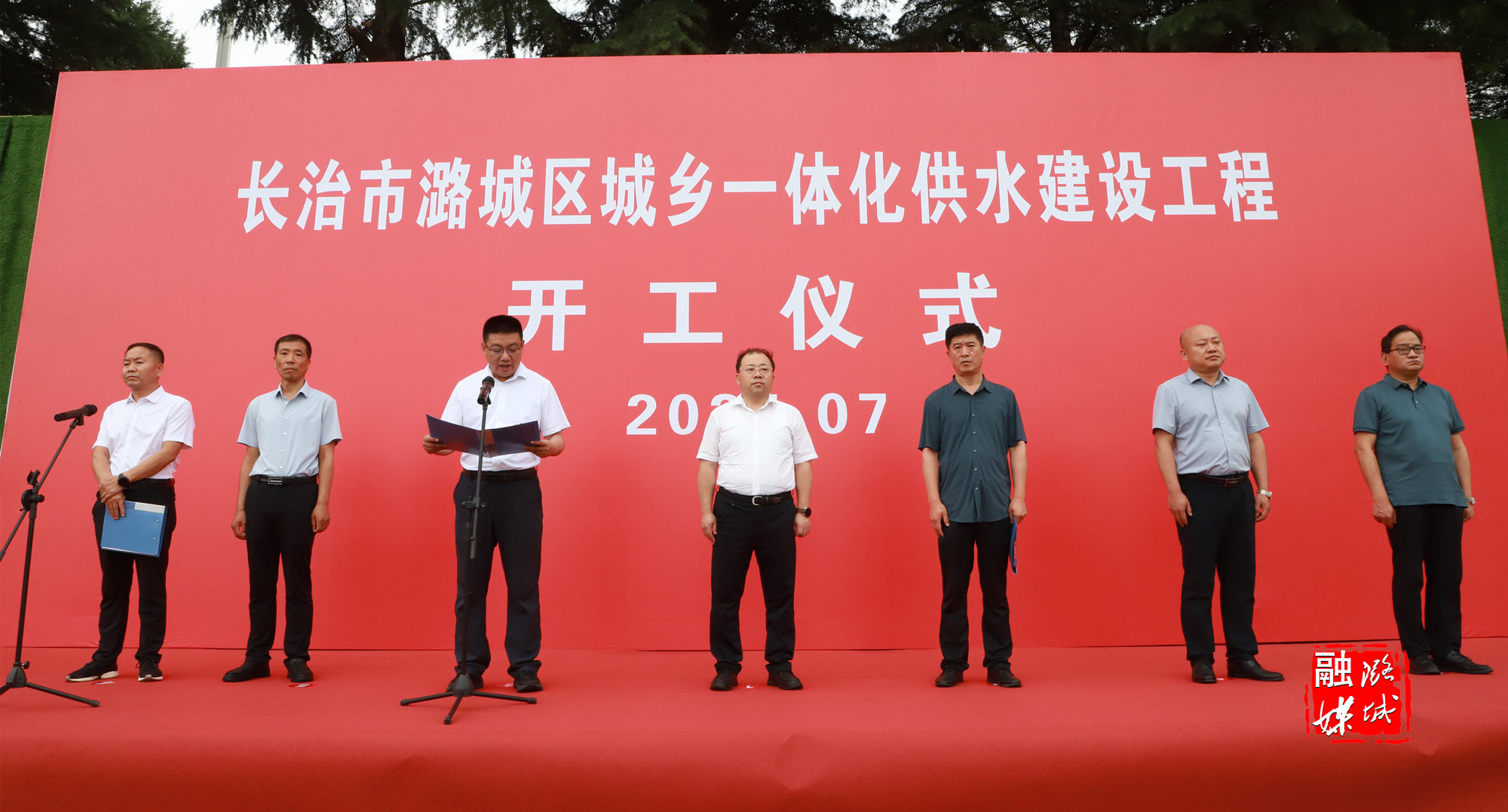 ★7月16日上午,我区举行城乡一体化供水建设工程开工仪式。区委副书记、区长柴哲出席仪式并宣布开工。长治市水利局四级调研员李文平出席仪式并讲话。副区长马智勇主持仪式。区直有关单位负责人、各乡镇(街道)及参建各方人员参加仪式。
