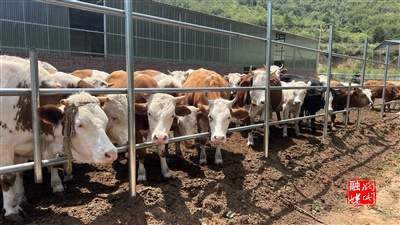 ★在黄牛蹄乡上黄村的特色养殖示范基地,几十头西门塔尔牛个个毛色光亮、体形健硕,正在悠闲地晒着太阳。“每头牛预计就是800斤左右,每天能吃8斤精料和20斤干草饲料,预计到八月份出栏能卖8000元左右。”上黄村党支部书记、村委会主任舒黎明作为牛场的管护员,每天细心地观察牛的状态、清理牛栏,确保每头牛都能健康成长。“我们在去年后半年购买了一部分西门塔尔肉牛,这种肉牛主要是肉质嫩、好饲养、长得快,现在已经发展到了80头,还有20多头牛怀上了小牛,预计后半年就能出栏20头左右。”