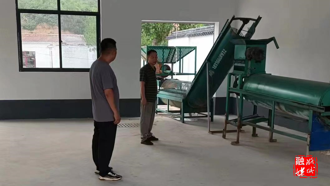 ▲辛安泉镇相关负责人在古城村查看红薯淀粉厂设备进厂情况。