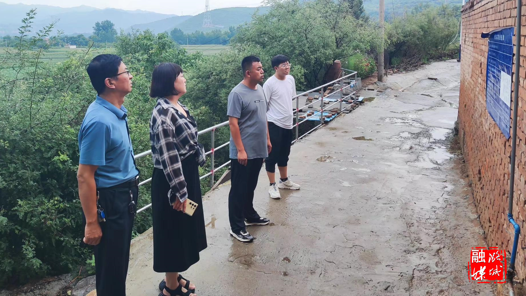 ▲微子镇相关负责人在韩家园村开展汛期隐患排查工作。